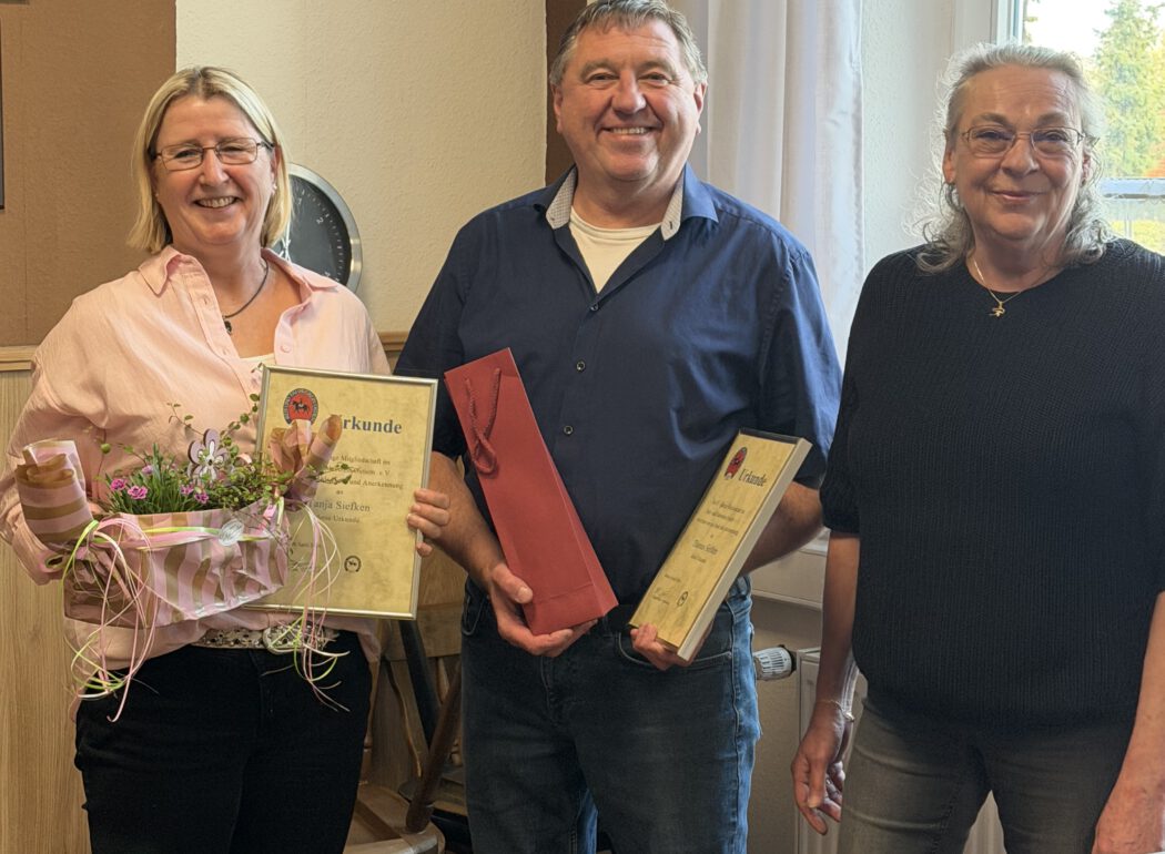 Bei der diesjährigen Jahreshauptversammlung wurden unter anderem unsere Vorstandsmitglieder Tanja und Thomas Siefken für ihre 15-jährige Vereinsmitgliedschaft geehrt.